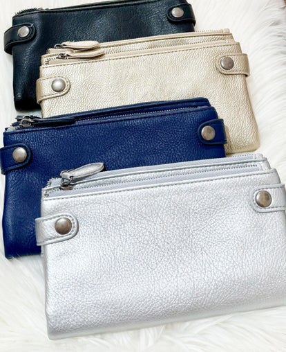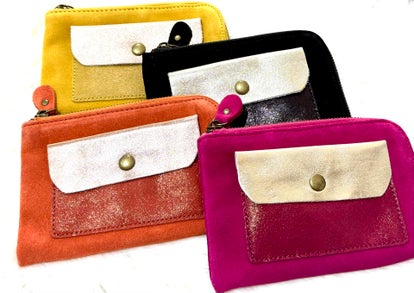 Porte-monnaies bi-matière (daim et cuir brillant doré)