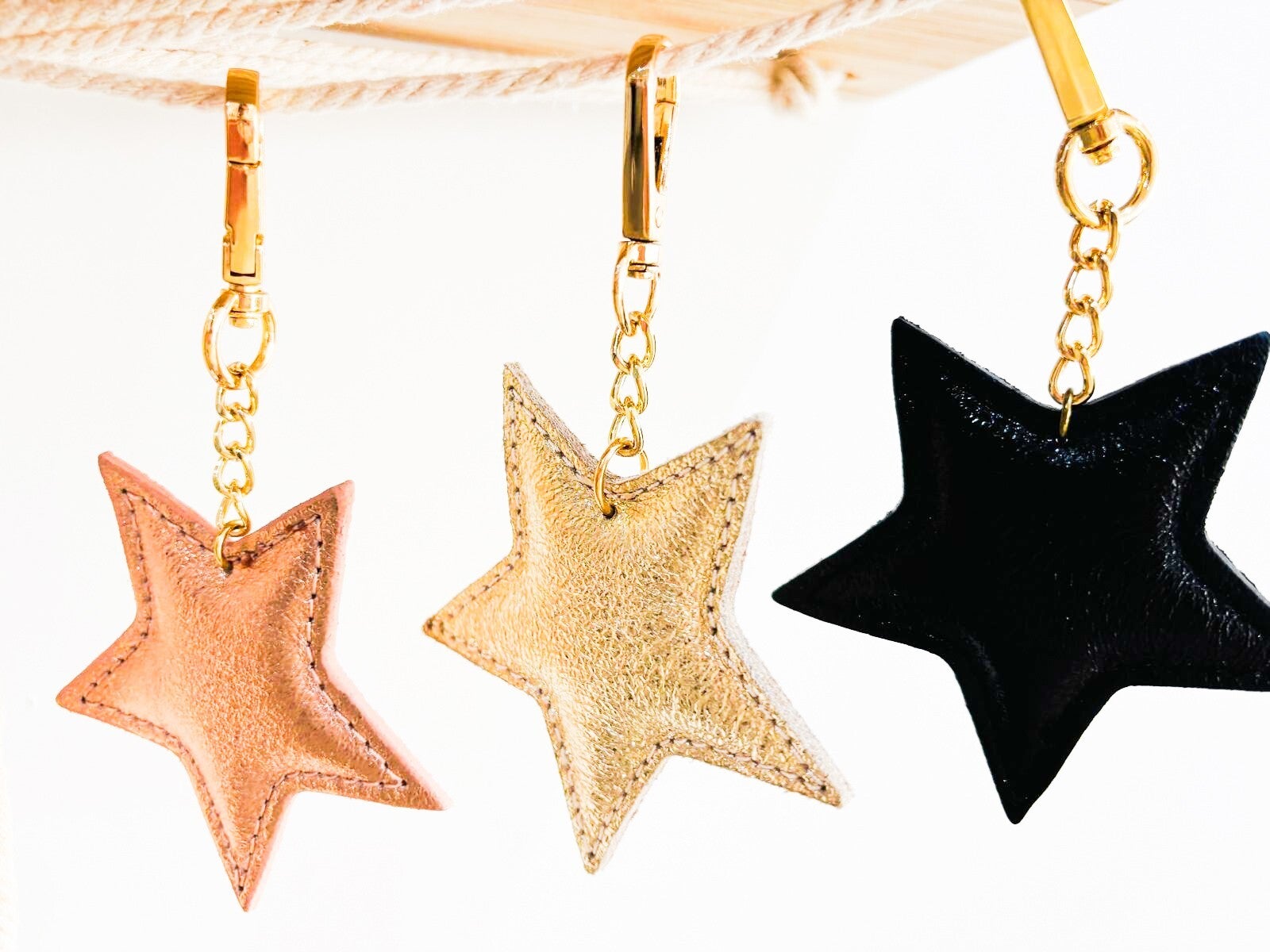 Les beaux porte-clés en forme d'étoile de 3 modèles de couleurs différentes .