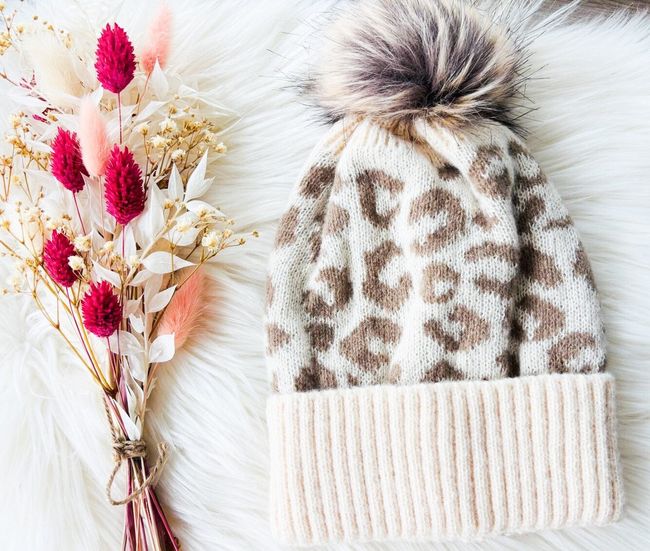 Bonnet lépoard avec un petit pompon