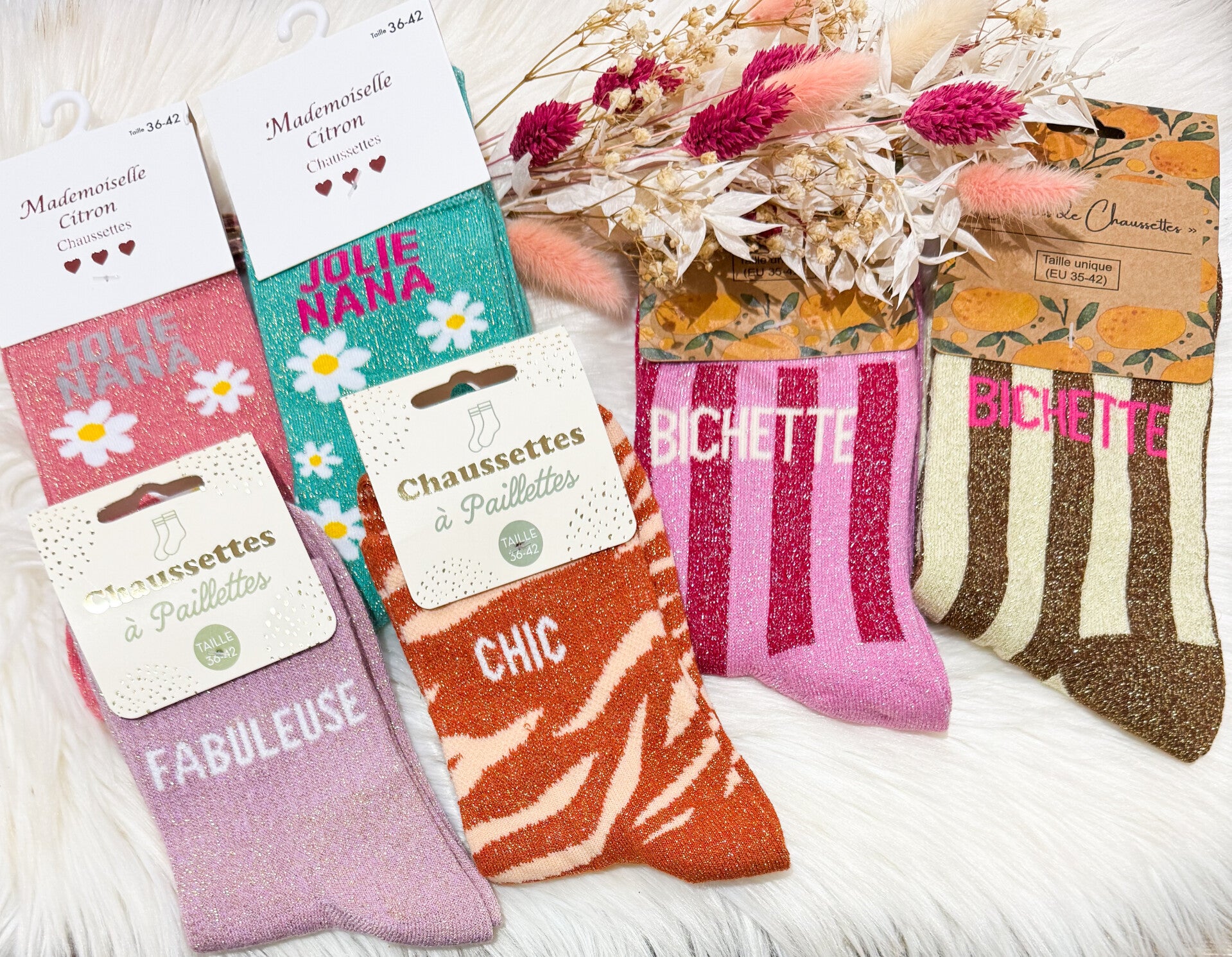 Chaussettes à paillettes messages femmes 36/42